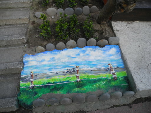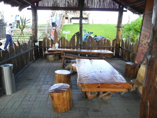 涼亭內的桌椅也是海巡人員利用漂流木自製而成的。