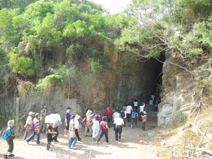 漁村小艇坑道較為寬敞,光線也明亮些.由堅硬的花崗岩開鑿而成,工程浩大艱辛.