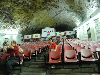 擎天廳是由一塊堅硬的岩盤開鑿而成,後面的軍旗是軍防部隊曾經駐在金門的紀念.現只在週六週日開放團體進入,但要預先預約.