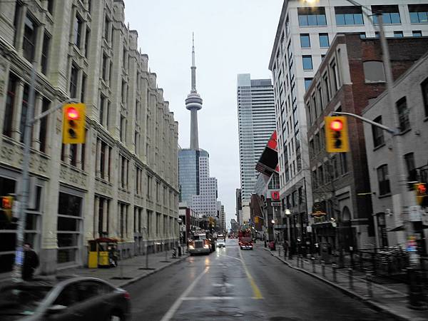 早上六點十五分由飯店出發,行經多倫多市區,圖中為多倫多地標CN Tower(西恩塔),是加拿大國家電視塔,塔高553.33公尺。